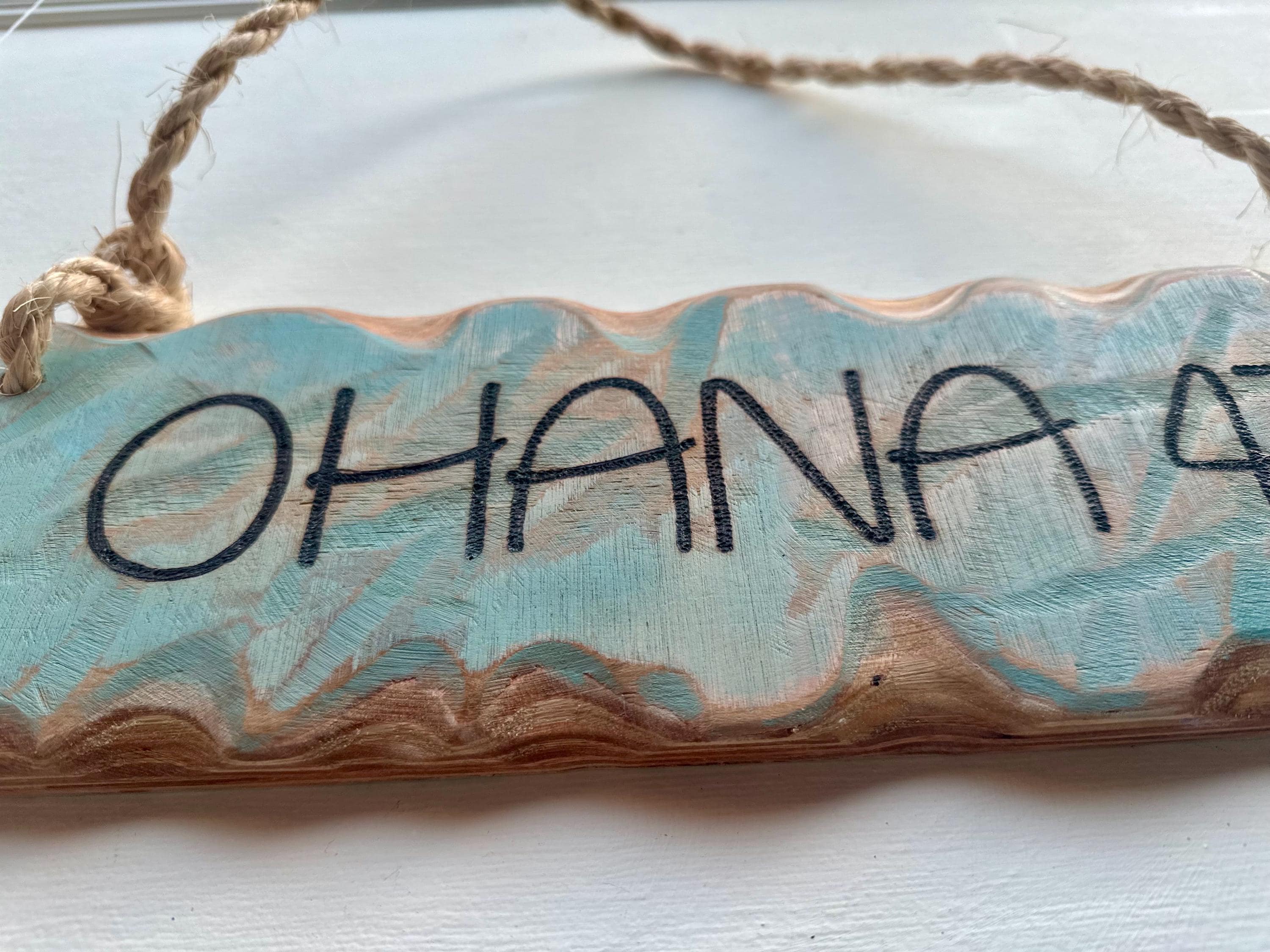 Wording is inscribed/carved in pyrography and in dark brown only