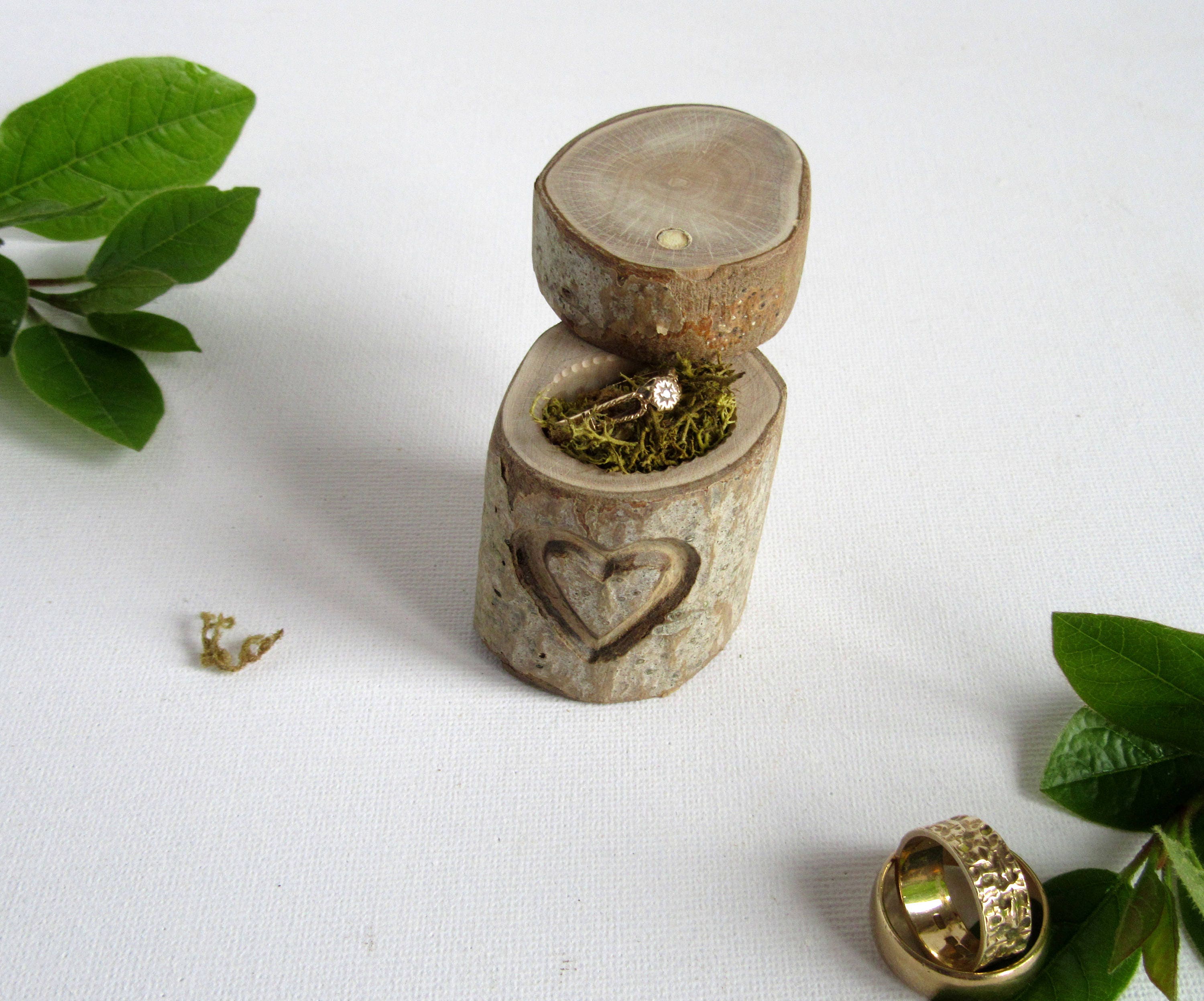 This box is a lovely addition to a woodland or rustic wedding and perfect for the timeless classic wedding and comes with a little leaf heart and some moss for presentation.