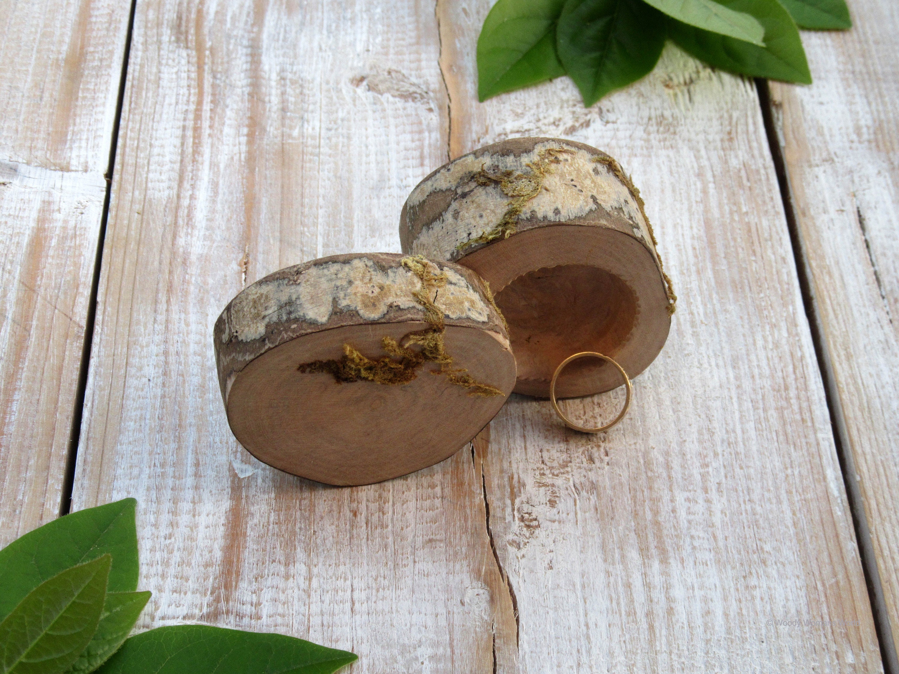This little ring box is embellished with moss and the ring space has daintily fluted edges. It has been left with a natural finish, just as nature would have it. Another little treasure for those special rings and best of all " it's fresh from the hands of the maker."
